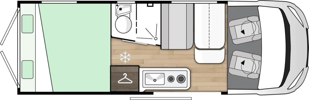 Če želite avtodom pod 7m z vzdolznimi posteljami zadaj in veliko kopalnico in prtljažnim prostorom bo M261 popolna izbira za vas.