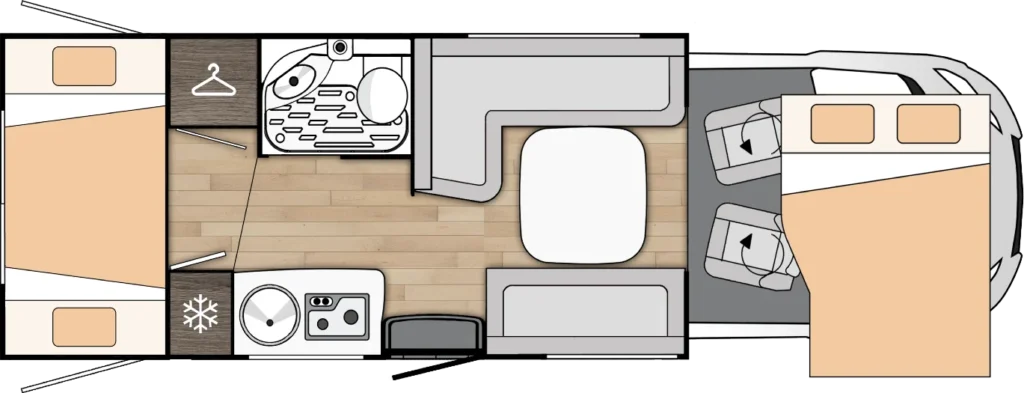 • Omejeno število kilometrov (350km/dan)- prekoračeno število kilometrov se obračuna ob vrnitvi avtodoma in sicer 0,3€/km.