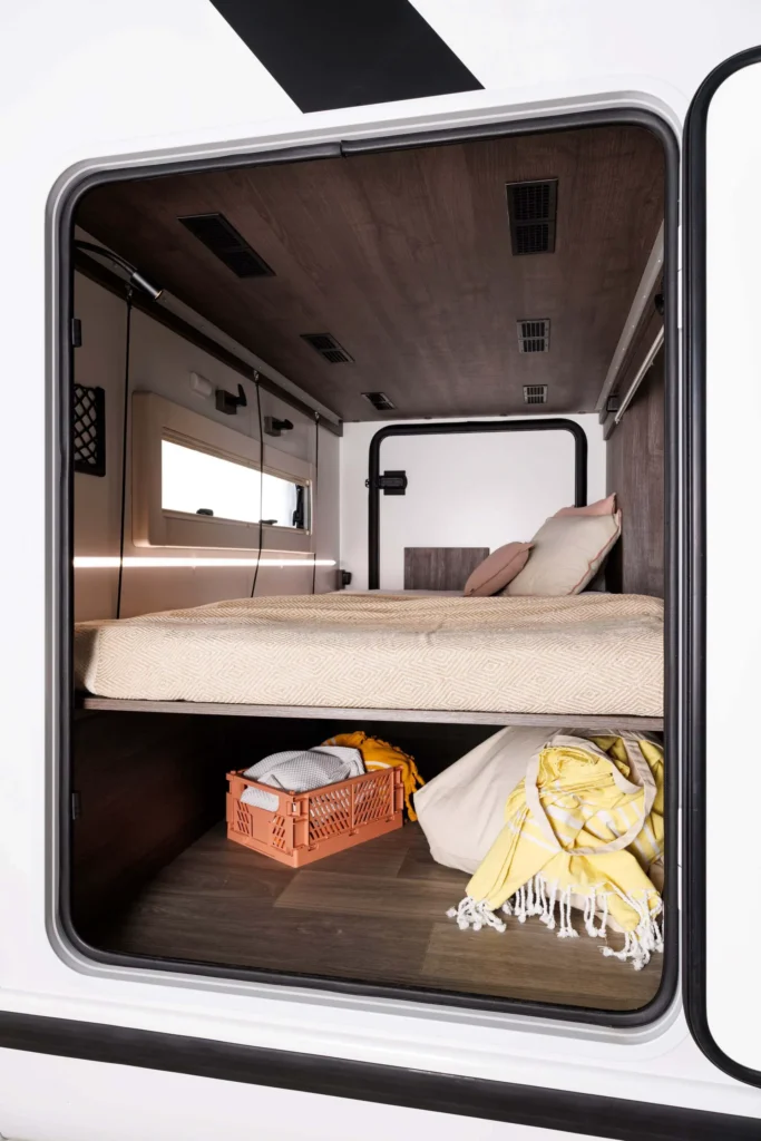 Spodnja postelja zadaj se lahko dvigne in poveča prtljažni prostor