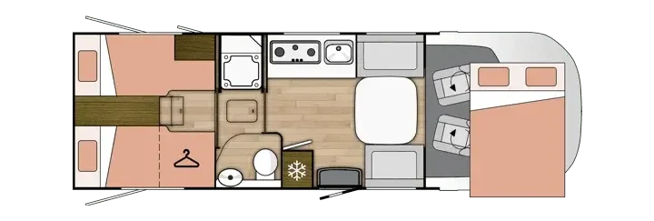 Zelo funkcionalen in udobni zadnji del, ki ima dve enojni postelji z možnostjo preoblikovana v ogromno posteljo.