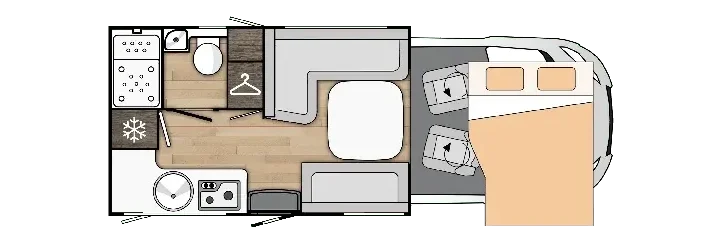 Kompakten in okreten avtodom dolžine le 5,99 m z avtomatskim menjalnikom, dvižno električno posteljo, velikim hladilnikom, ločenim tušem in prostorno kabino – idealen za vse, ki želijo okretnost vana in udobje večjega avtodoma.