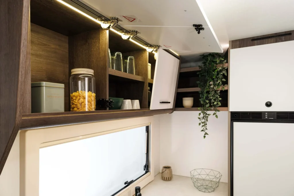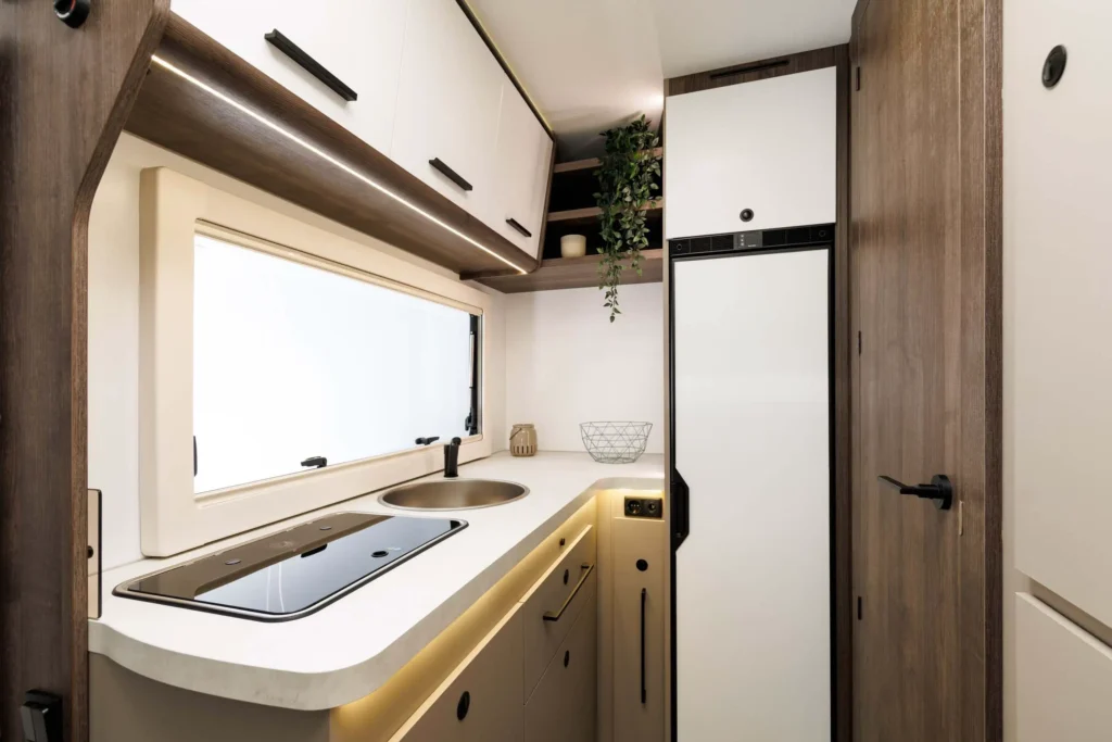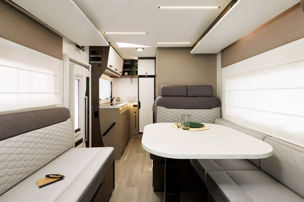 - Kompakten in okreten avtodom dolžine le 5,99 m z avtomatskim menjalnikom, dvižno električno posteljo, velikim hladilnikom, ločenim tušem in prostorno kabino – idealen za vse, ki želijo okretnost vana in udobje večjega avtodoma.